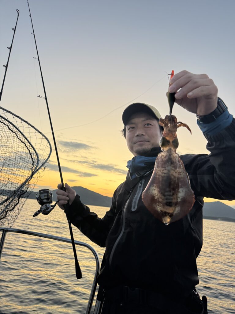 前半ティップランエギング、後半ジギングの予定で出港です。